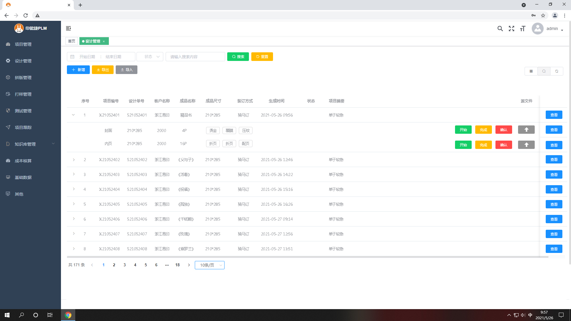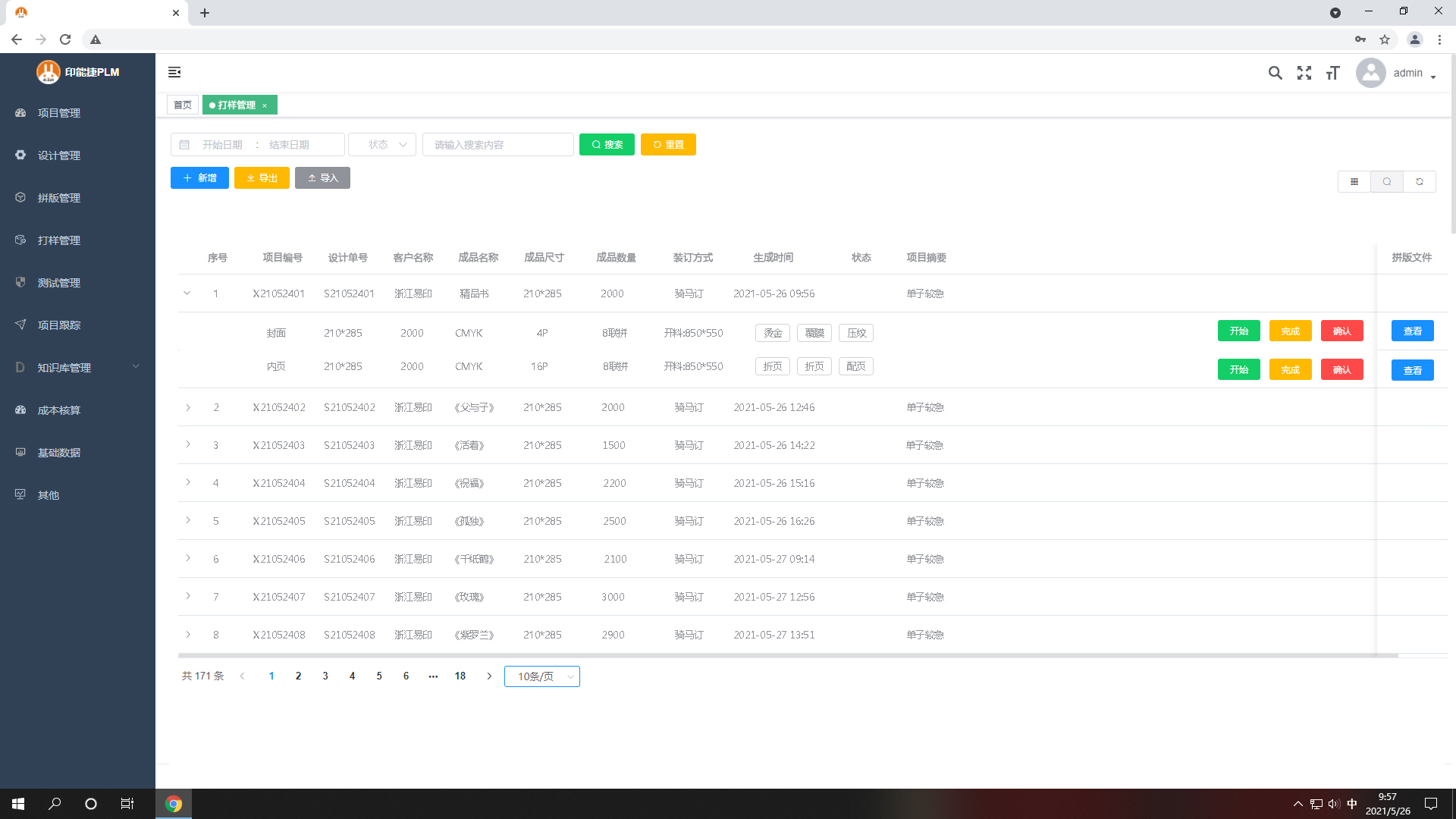 2.數(shù)碼打樣開始,點(diǎn)‘開始’每個(gè)打樣任務(wù)